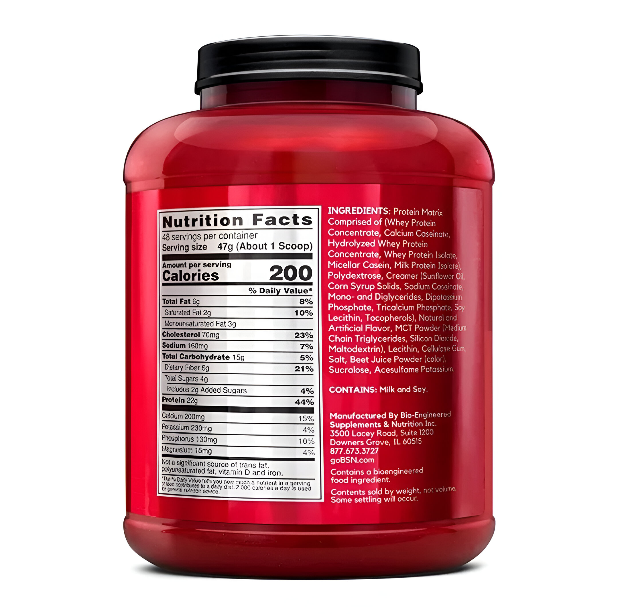 پروتئین کامل و متنوع: هر پیمانه Syntha‑6 شامل 22 گرم پروتئین از منابع مختلف شامل Whey Protein Isolate، Whey Concentrate، Micellar Casein، Milk Protein Isolate و Egg Albumen است.