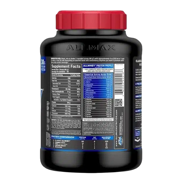 پروتئین آل وی کلاسیک آلمکس (AllWhey Classic) از برند AllMax یک مکمل پروتئینی شناختهشده است که برای تامین پروتئین موردنیاز بدن، بهویژه در ورزشکاران و افراد فعال طراحی شده است. این مکمل در دستهی پروتئینهای وی (Whey Protein) قرار دارد و ترکیبی از کنسانتره و ایزولهی پروتئین وی است. در ادامه اطلاعات بیشتری درباره این محصول ارائه میشود: