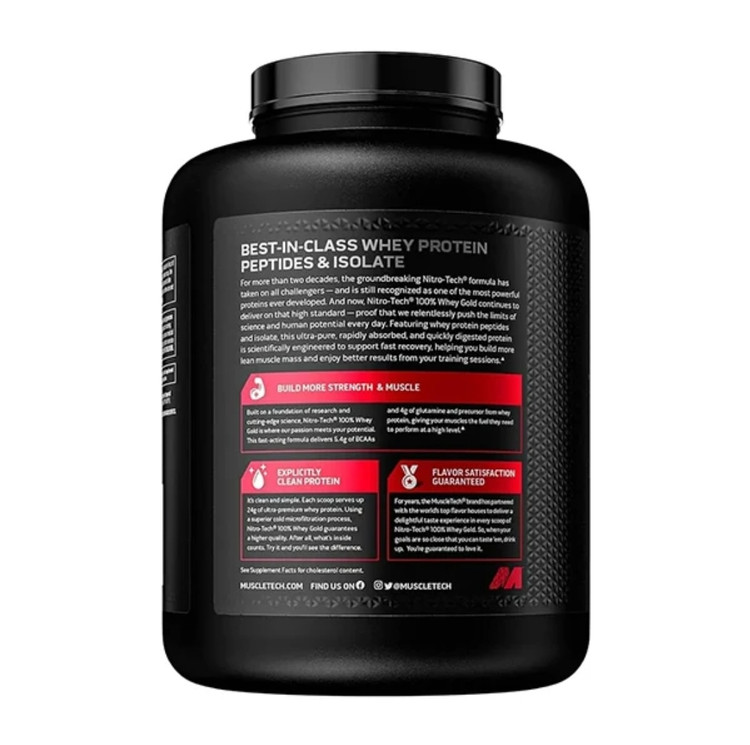 هر وعده از نیتروتک وی گلد حاوی 24 گرم پروتئین با کیفیت است که میتواند نیازهای پروتئینی روزانه بدن را تأمین کند و به رشد عضلات کمک کند.